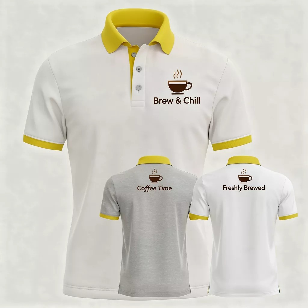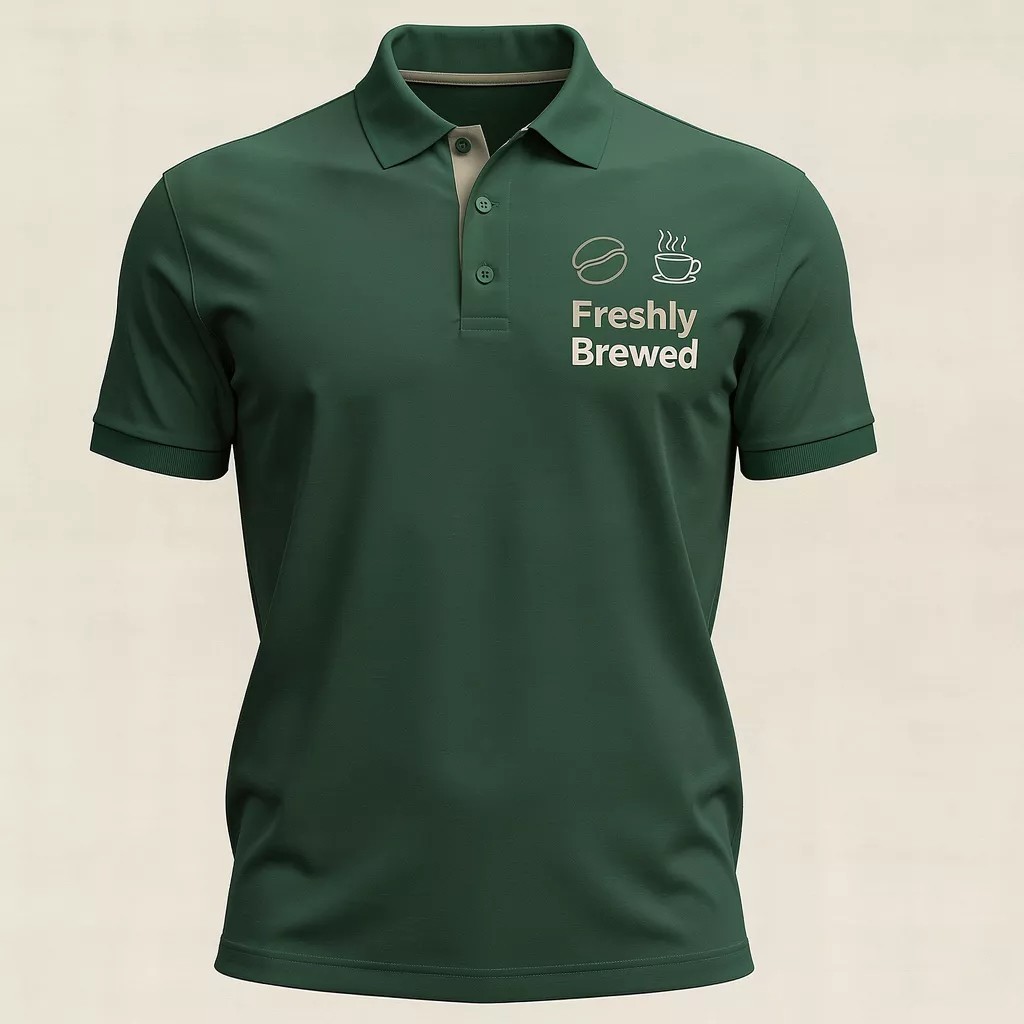Get best custom printed T-shirts for cafes in Tiruppur from the top-rated T-shirt manufacturing factory in Tiruppur. We deliver durable, stylish, and high-quality T-shirts for baristas, staff, and cafe uniforms.