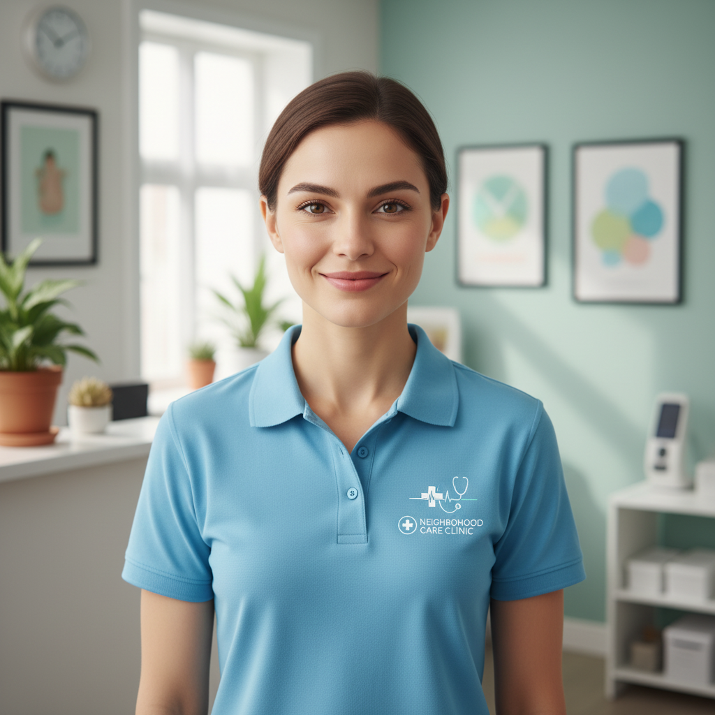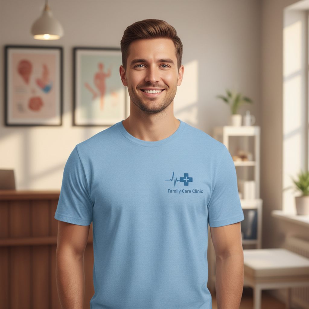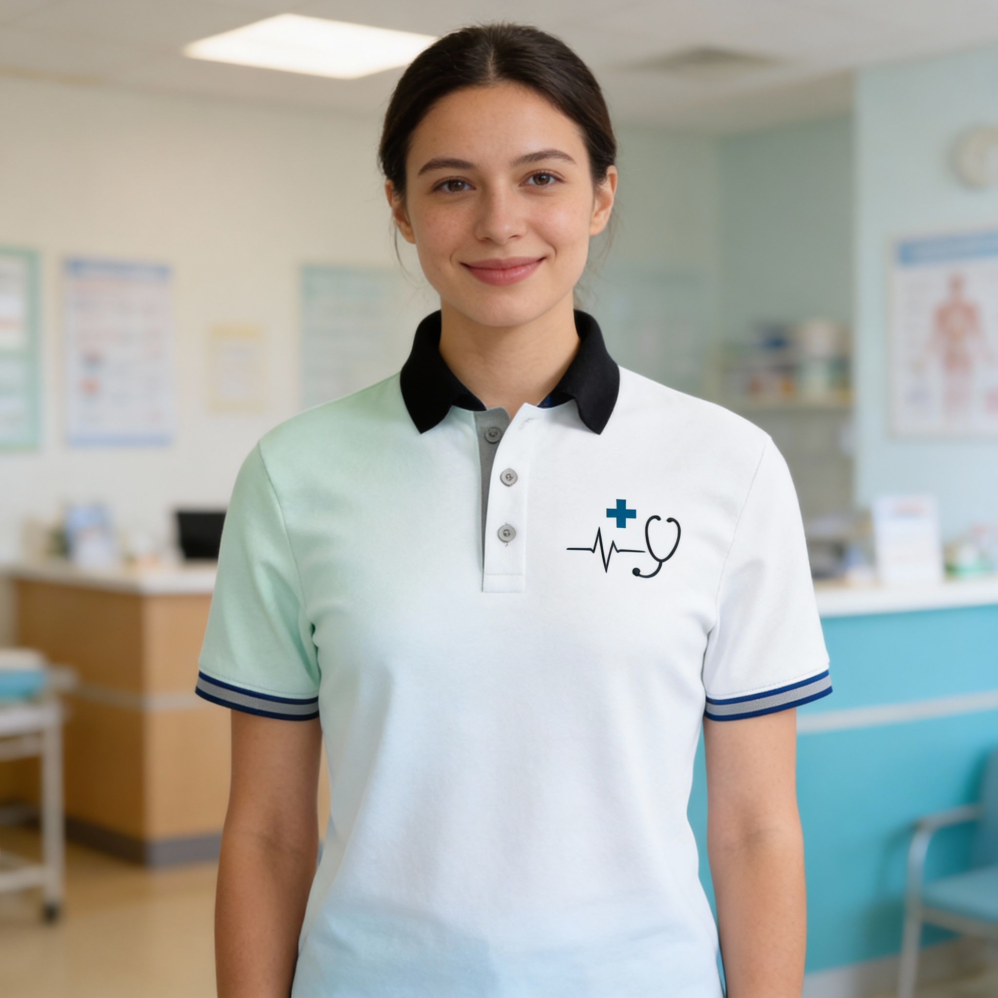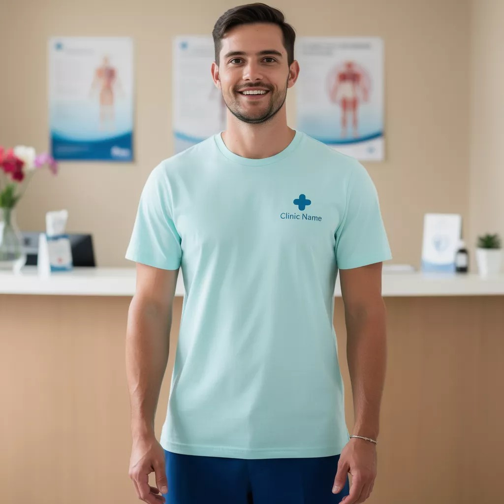 Get best custom printed T-shirts for clinics in Tiruppur from the top-rated T-shirt manufacturing factory in Tiruppur. We deliver durable, comfortable, and high-quality T-shirts for doctors, staff, and clinic uniforms.